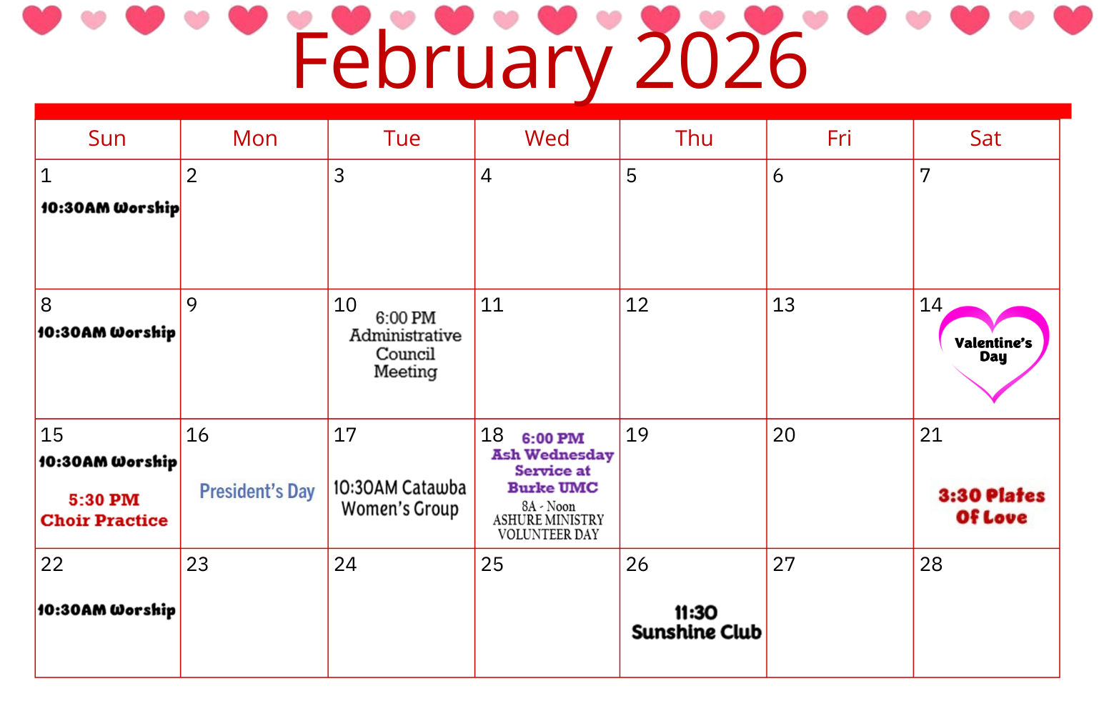 The Choir will practice on Sunday, February 15th at 5:30 PM. They are preparing for Ash Wednesday and Lenten Services. Please join us!
